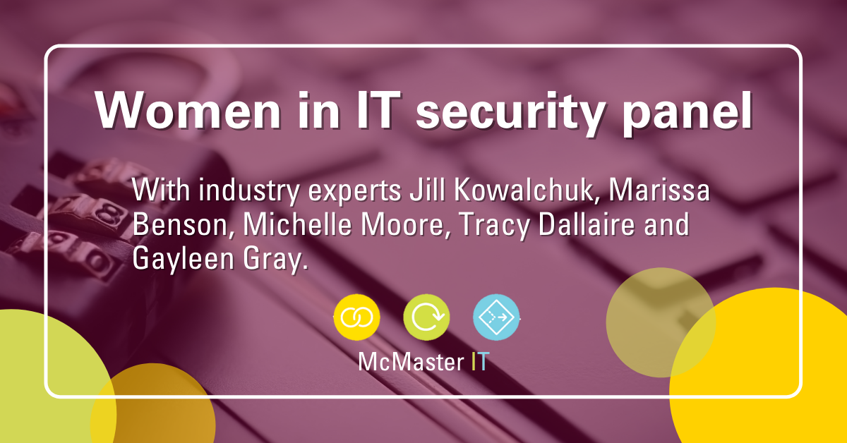 The panel featured industry experts Jill Kowalchuk (director, CanSSOC), Michelle Moore (director, IT Security and Project Management, Humber College), Tracy Dallaire (director of Information Security, McMaster University), and Marissa Benson (senior systems administrator, McMaster University).